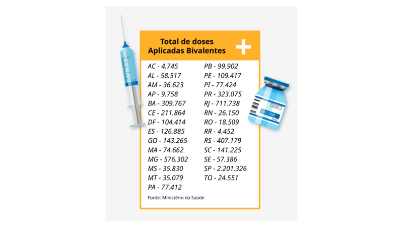Confira abaixo o total de doses aplicadas da vacina bivalente por estado: